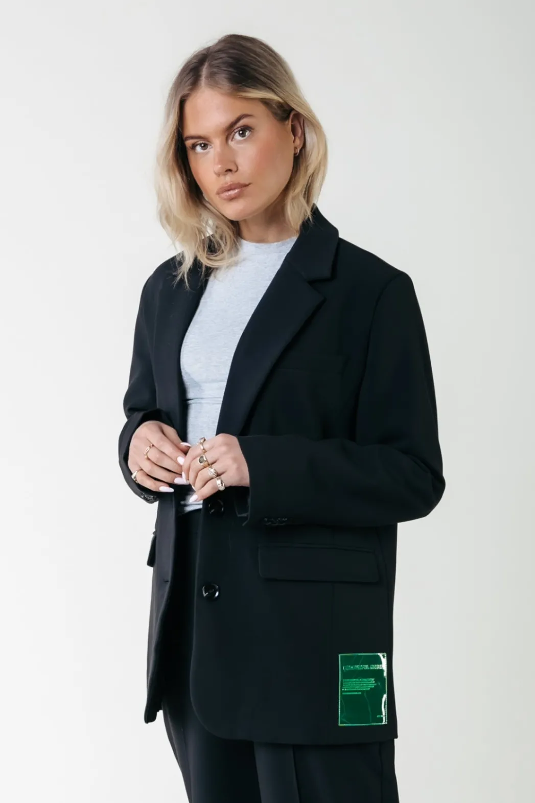 Blazer 74% Polyester, 20% Viscose, 6% Elastaan Stomerij reiniging Oversized fit Klepzakken Knoopsluiting Is overs…